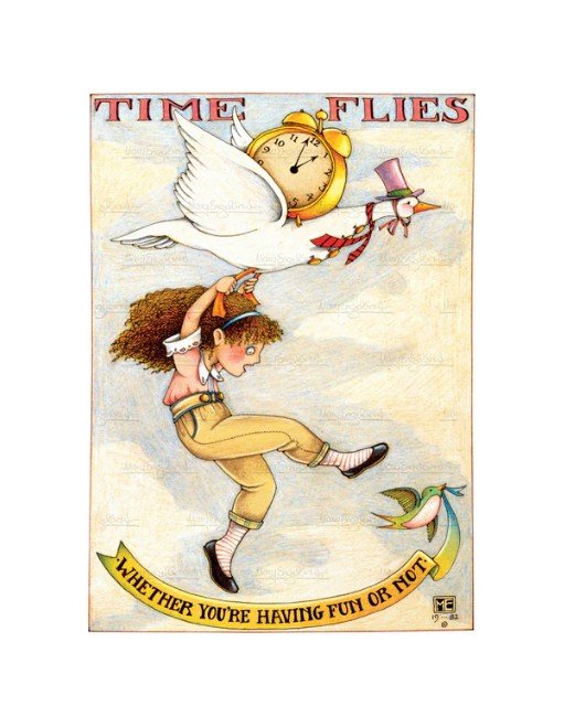 “Time flies whether you’re having fun or not,” I remember when I got it, I thought it was awfully clever, because, as all teenagers do, I was always having fun, so who cared! I was so funny. If I could go back in time, I’d slap my teenage self in the face and tell her to pay attention to what was happening around her. To stop being so self-absorbed and to quit thinking the good times would never end.